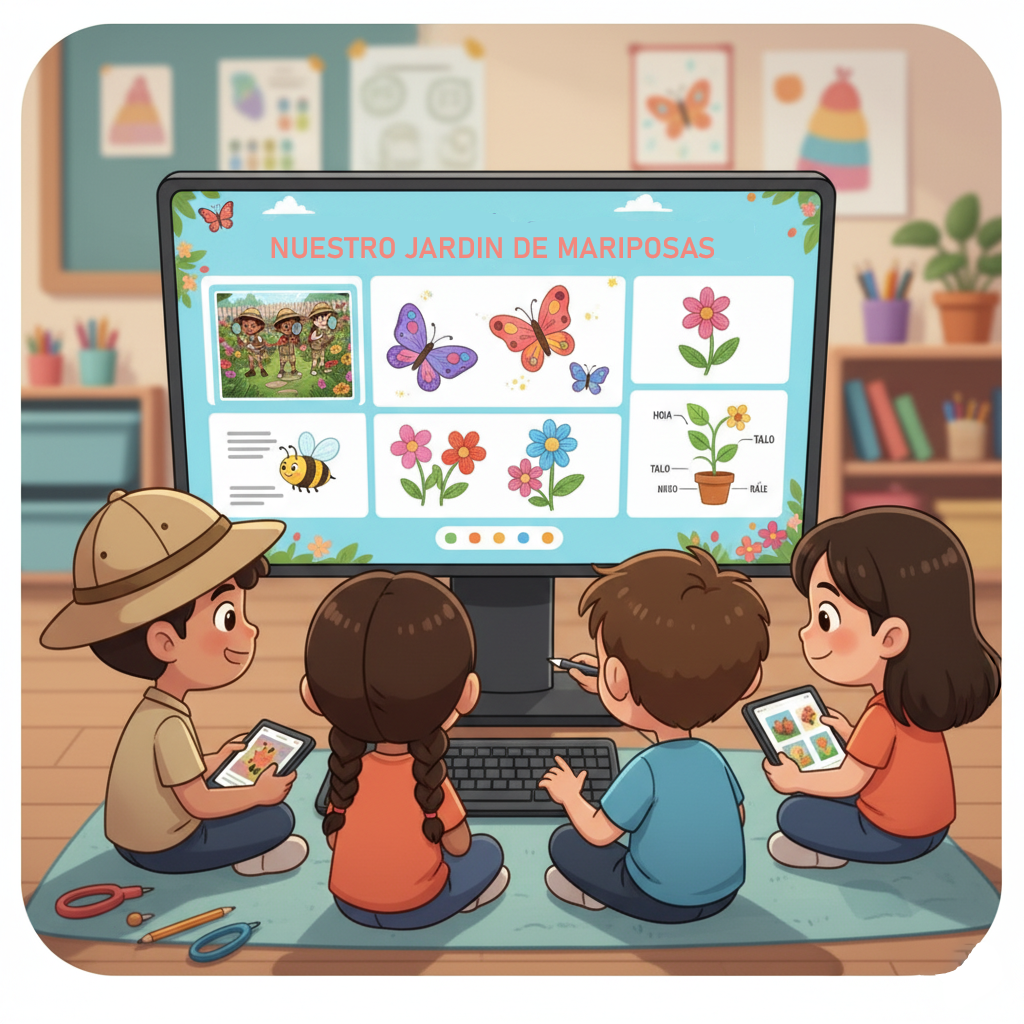 - Contenido Invertido para la Base Teórica: En lugar de dar una clase sobre polinización o tipos de plantas, se preparan recursos para que los niños los exploren en casa.