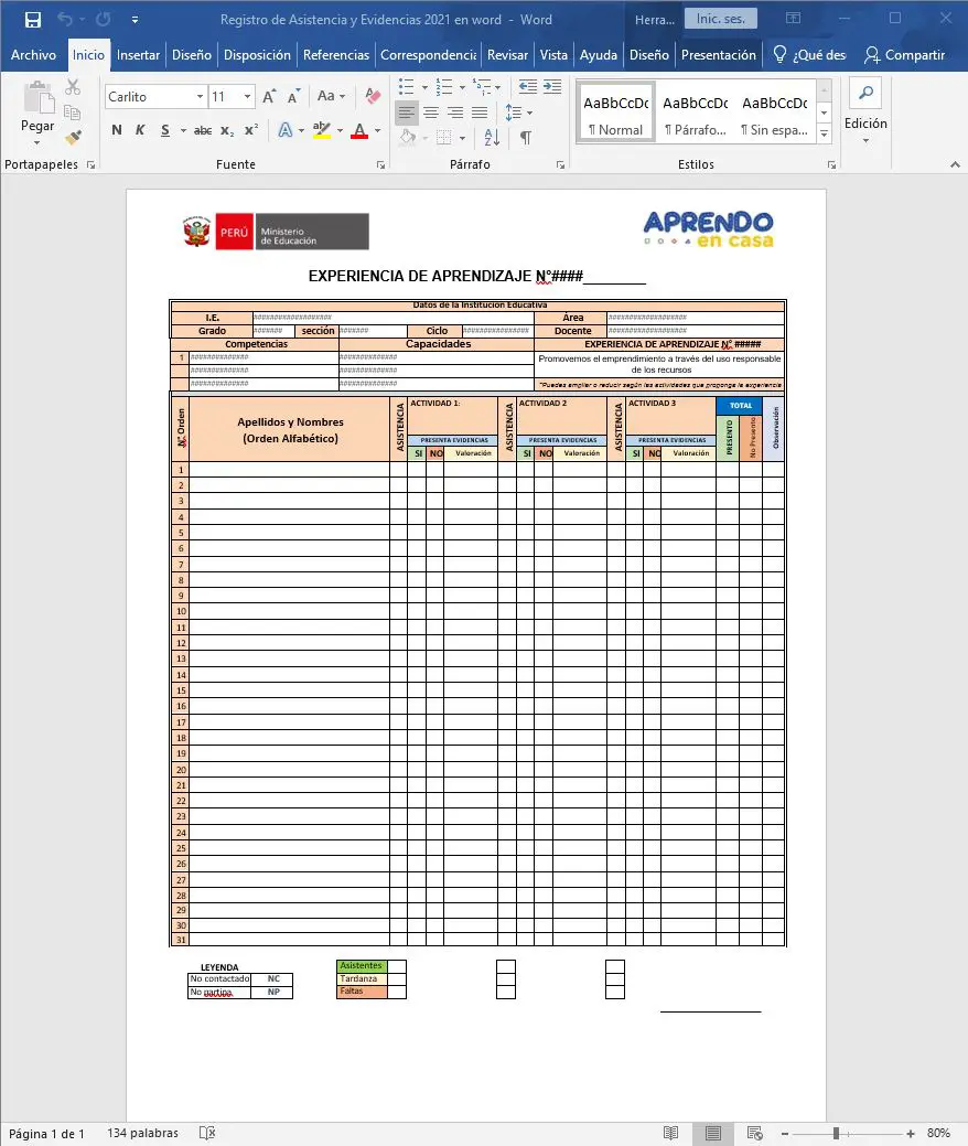 Registro de control de asistencia y envió de evidencias APRENDO EN CASA. para todos los grados INICIAL, PRIMARIA Y SECUNDARIA Modelo de formato Registro de control de asistencia y envió de evidencias APRENDO EN CASA. Usted como docente podrá agregar información de la I.E. y datos de sus alumnos y agregar la evidencia que le entregaron por parte de los estudiantes de las sesiones trabajadas durante la semana.