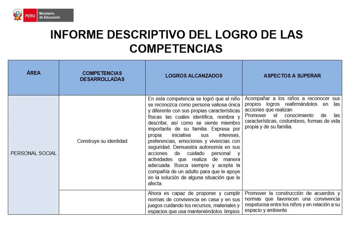 INFORME DESCRIPTIVO DEL LOGRO DE LAS COMPETENCIAS. ARCHIVOS EN WORD.