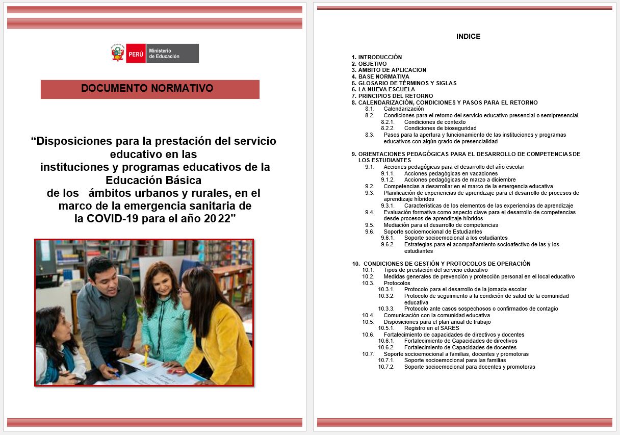 “Disposiciones para la prestación del servicio educativo en las instituciones y programas educativos de la Educación Básica de los ámbitos urbanos y rurales, en el marco de la emergencia sanitaria de la COVID-19 para el año 2022”