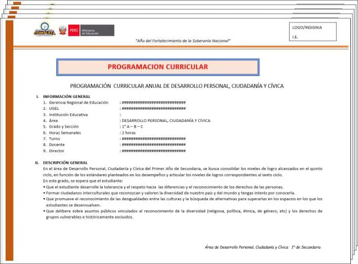 Formatos de Programación Curricular Anual DPCC Secundaria 2022