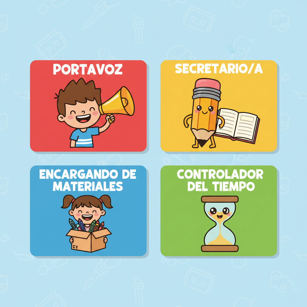 Para evitar que uno o dos alumnos dominen la tarea mientras otros se desconectan, la asignación de roles es clave. Los roles deben rotar en cada nueva actividad para que todos desarrollen diferentes competencias. Algunos roles básicos para primaria pueden ser: