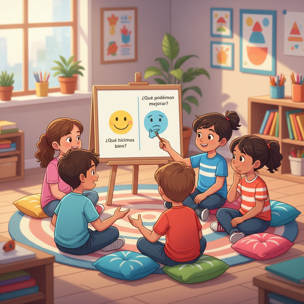 Al final de la actividad, dedica siempre unos minutos para la autoevaluación grupal. Pregúntales: ¿Qué hicimos bien como equipo? ¿Qué podemos mejorar la próxima vez? ¿Todos participaron? Esta reflexión es vital para que tomen conciencia de su funcionamiento y mejoren sus habilidades de colaboración.