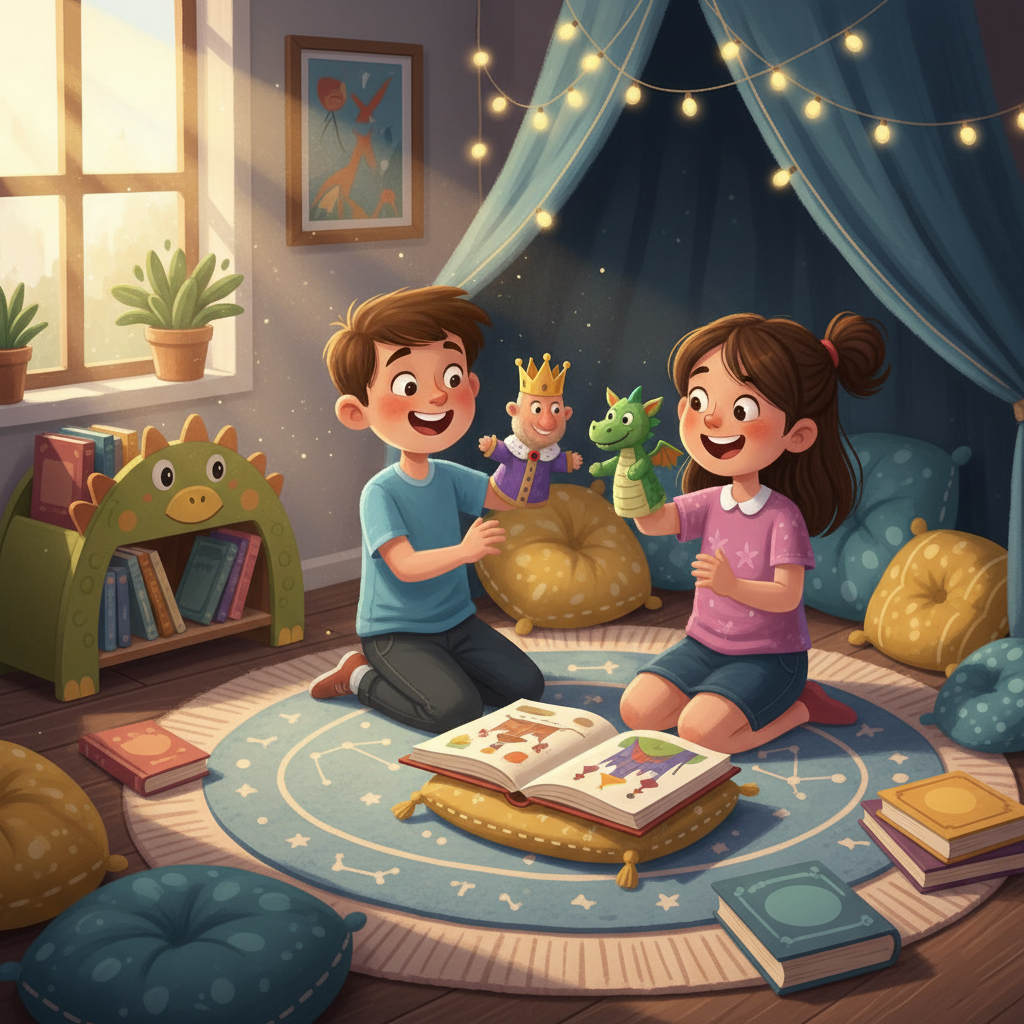 - Títeres y disfraces: Ten a mano algunos títeres o elementos de disfraz sencillos relacionados con cuentos populares. Esto les invita a no solo leer la historia, sino a representarla, a vivirla.